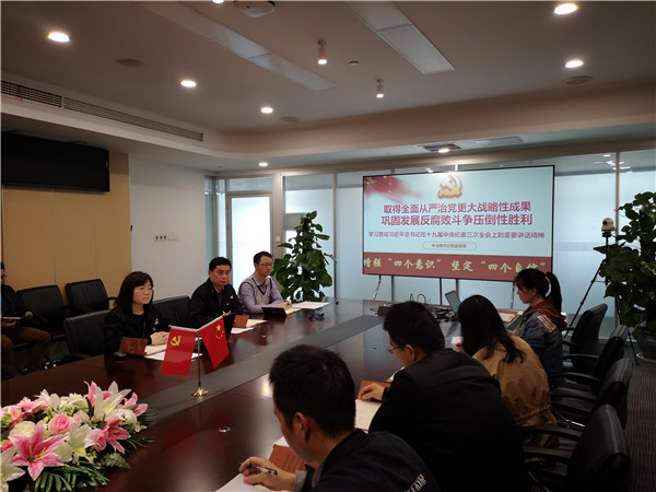 在黨課學習環節,由支部書記帶領大家共同學習了以 “貫徹習近平總書記在十九屆中央紀委三次全會上的重要講話精神”為題的專題學習,主要從全面從嚴治黨新成果、改革40周年自我革命的經驗、2019年反腐敗斗爭方向、從嚴領導干部管理、對紀檢監察機關及紀檢監察干部的希望等五個方面系統學習。